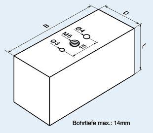 E-Cu-Rohling,flach m. 1xGew./2Stiftbohr. BxDxL: 40 x30 x 30 mm, System EROWA |